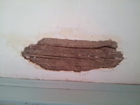 | Really. If we just ripped off all the plaster and painted the lath, wouldn't that look cool? OK, so it would have been a bit breezy... |